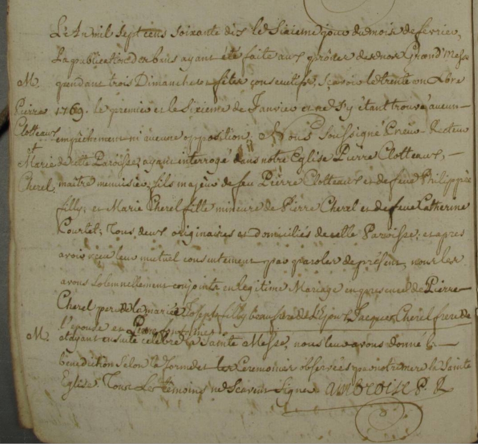 Fiançailles : 27 juillet 1769 à Lassy 35580 Mariage : 7 février 1770 à Lassy 35580