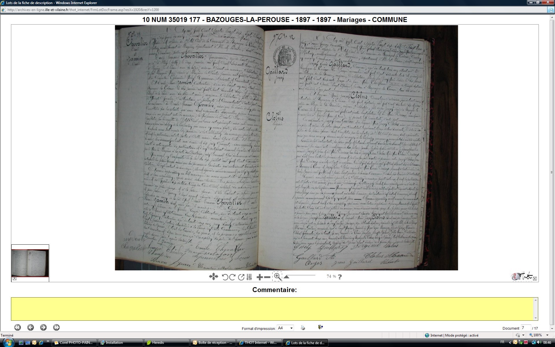 Mariage : 22 juin 1897 à Bazouges-La-Pérouse 35560