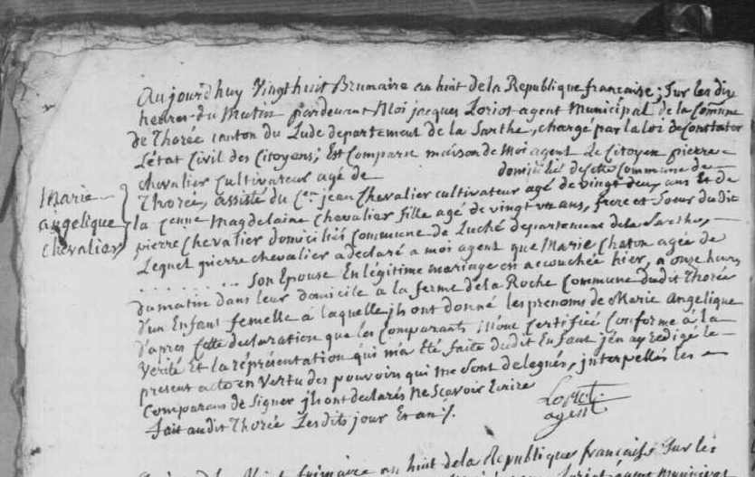 Naissance : 28 brumaire an VIII à Thorée-Les-Pins 72800