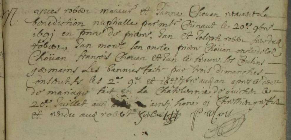 Mariage : 20 novembre 1691 à Guichen 35580