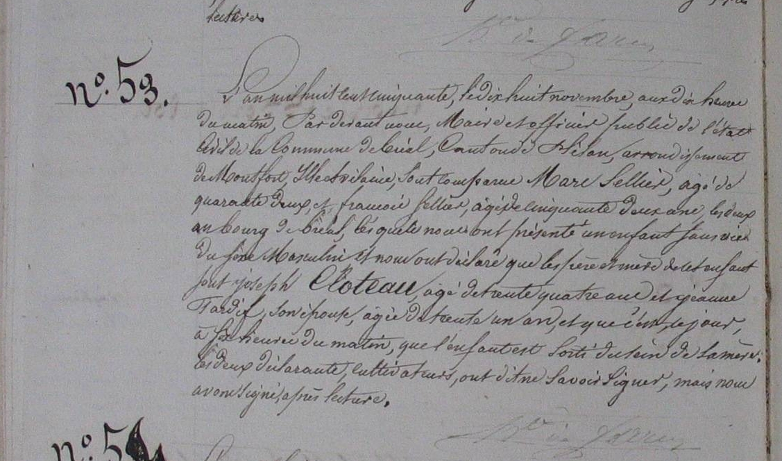 Naissance : 18 novembre 1850 à Bréal-Sous-Montfort 35310 Décès : 18 novembre 1850 à Bréal-Sous-Montfort 35310