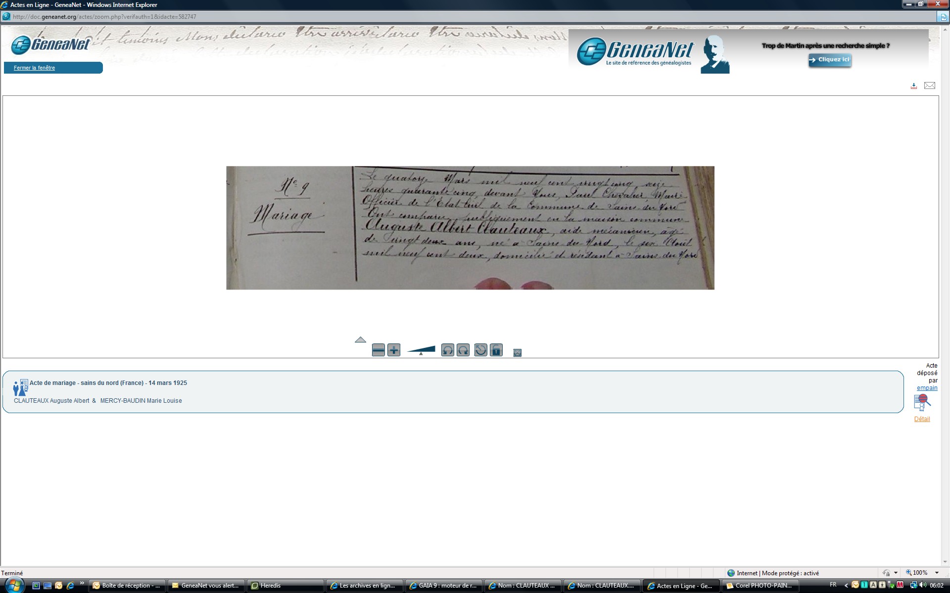 Mariage : 14 mars 1925 à Sains-Du-Nord 59177