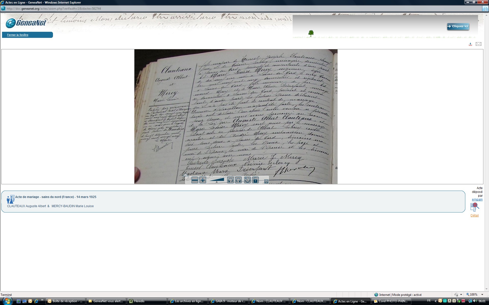 Père : CLAUTEAUX Ernest Joseph ( 1875 - 1945 )