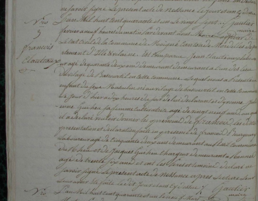 Père : CLAUTEAUX Jean Baptiste ( 1757 - 1841 )