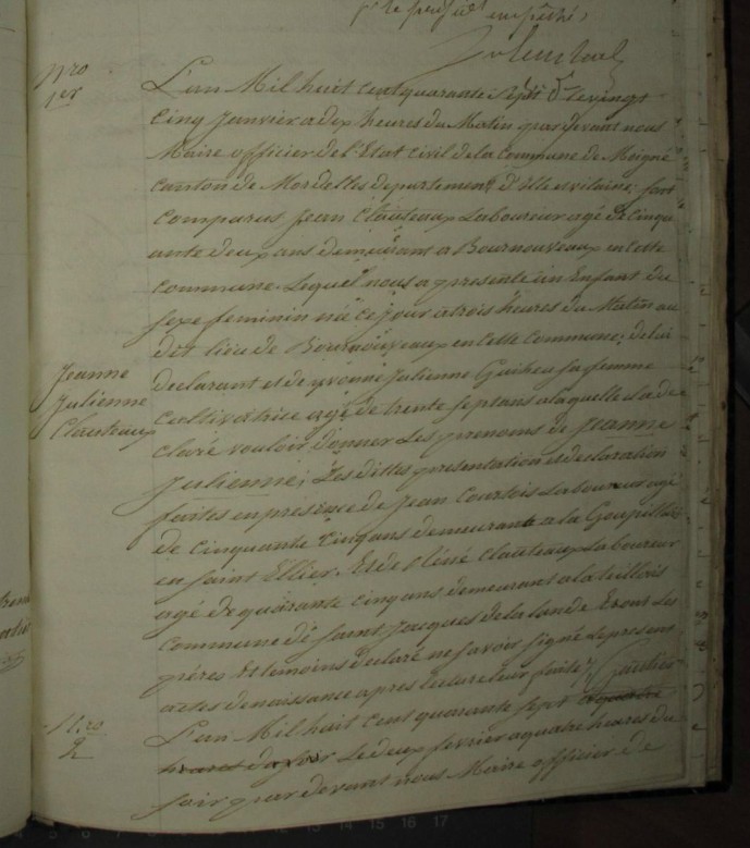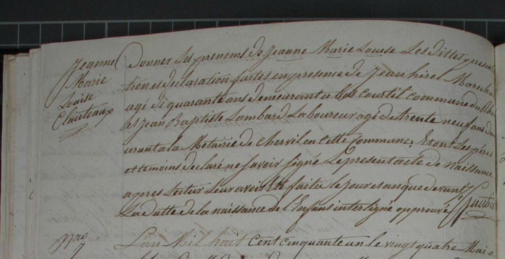 Père : CLAUTEAUX Jean Baptiste ( 1757 - 1841 )