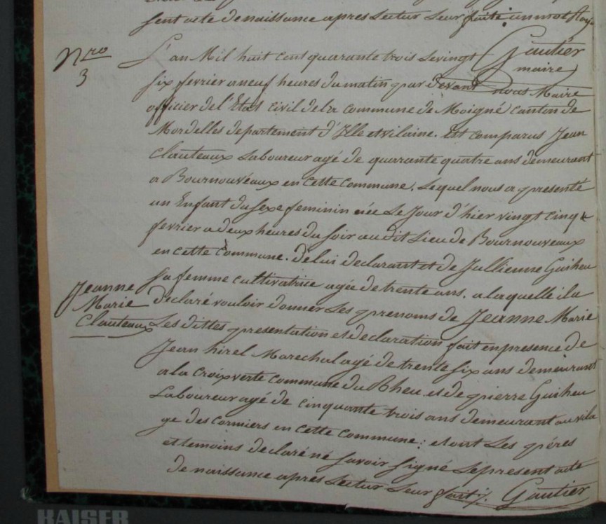Naissance : 26 février 1843 à Moigné 35910