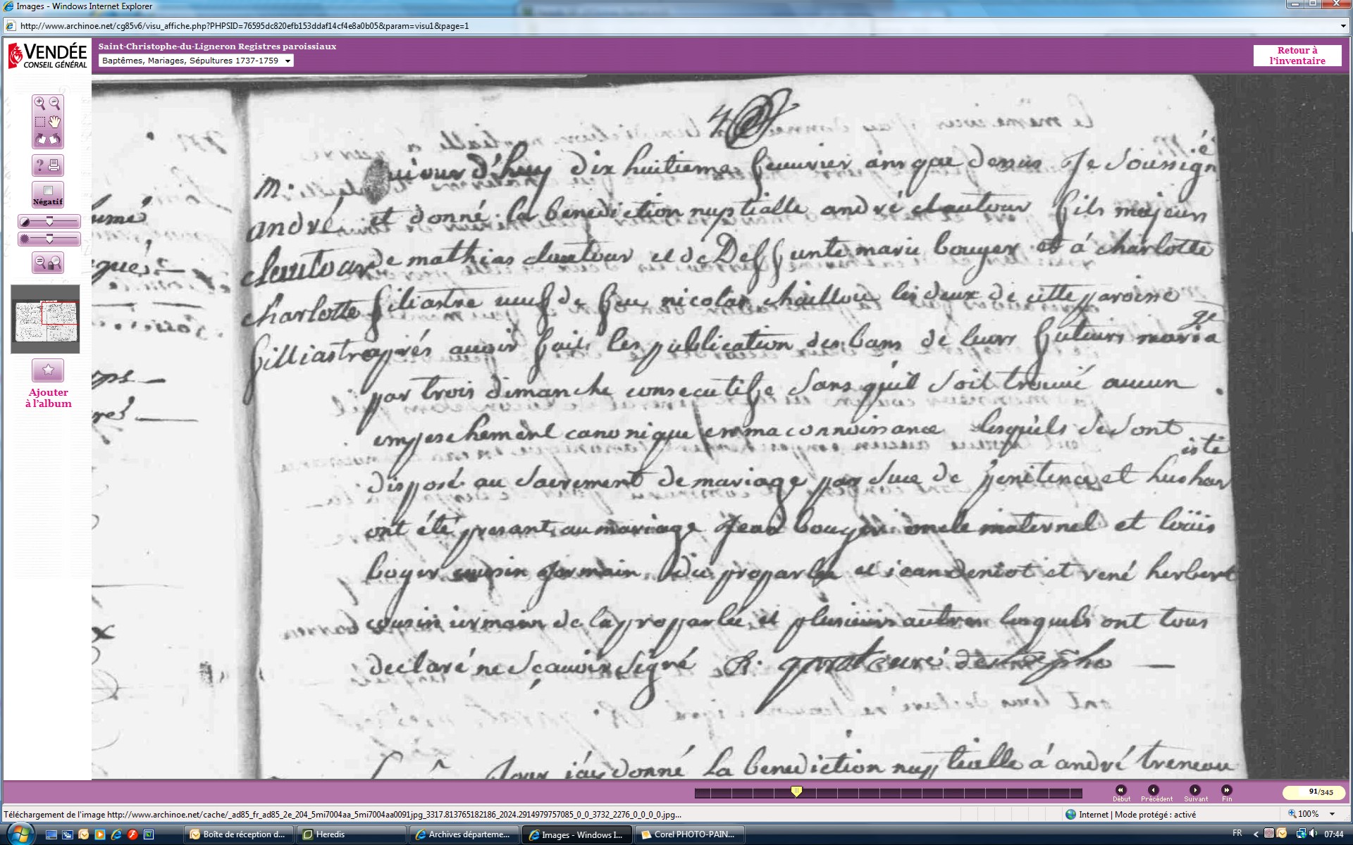 Mariage : 18 février 1744 à Saint-Christophe-Du-Ligneron 85670
