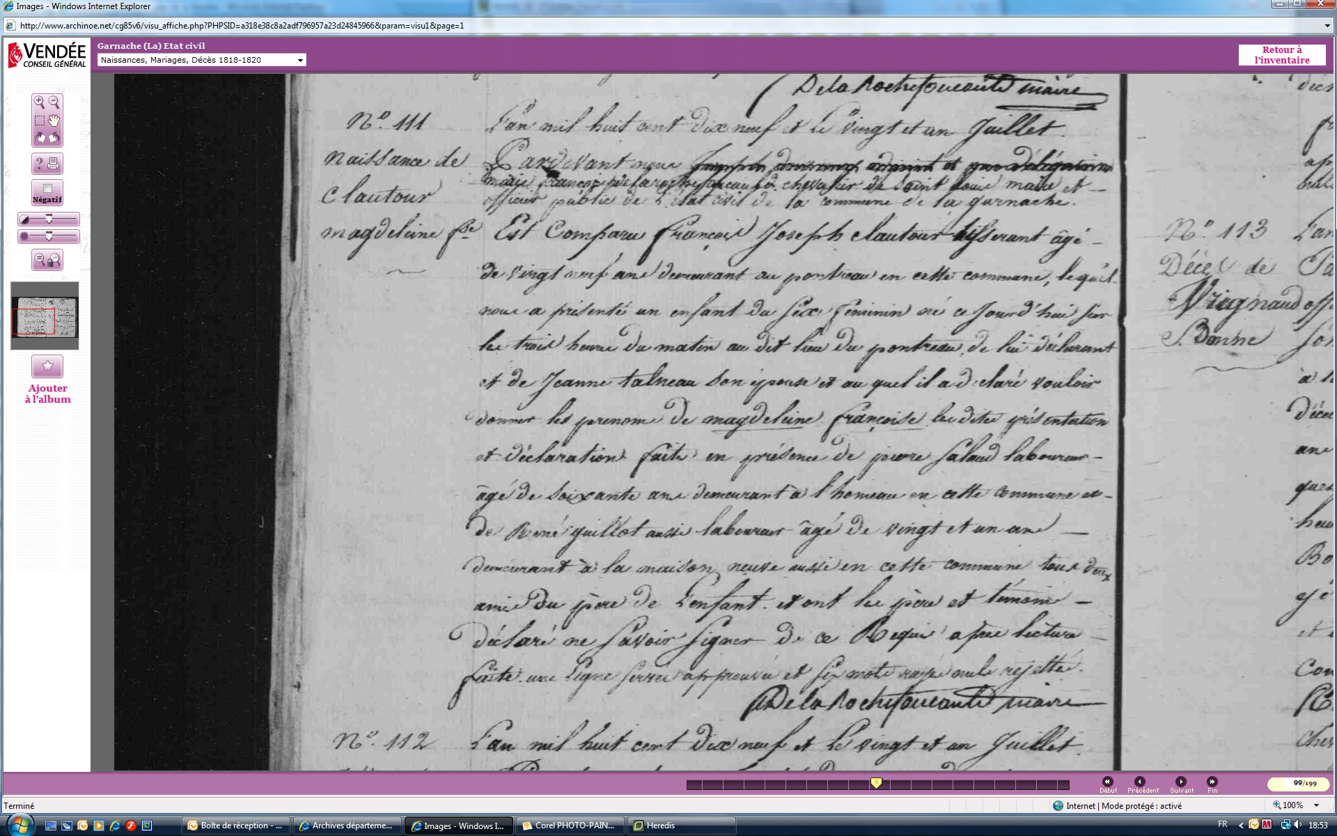 Naissance : 23 frimaire an VI à La Garnache 85710 Décès : 17 juillet 1842 à La Garnache 85710