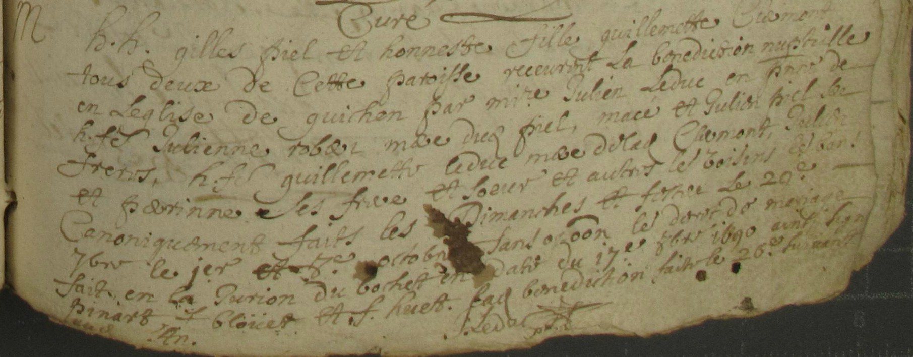Mariage religieux : 26 octobre 1690 à Guichen 35580