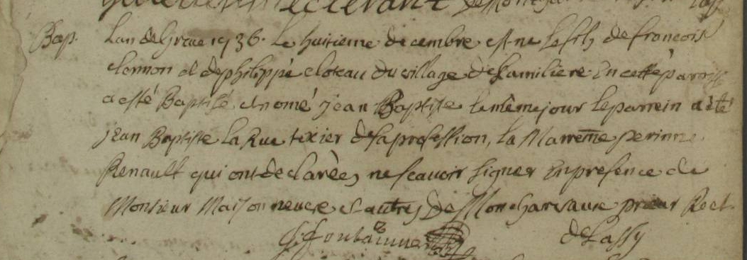 Naissance : 15 juin 1664 à Guichen 35580 Baptême : 2 juillet 1664 à Guichen 35580