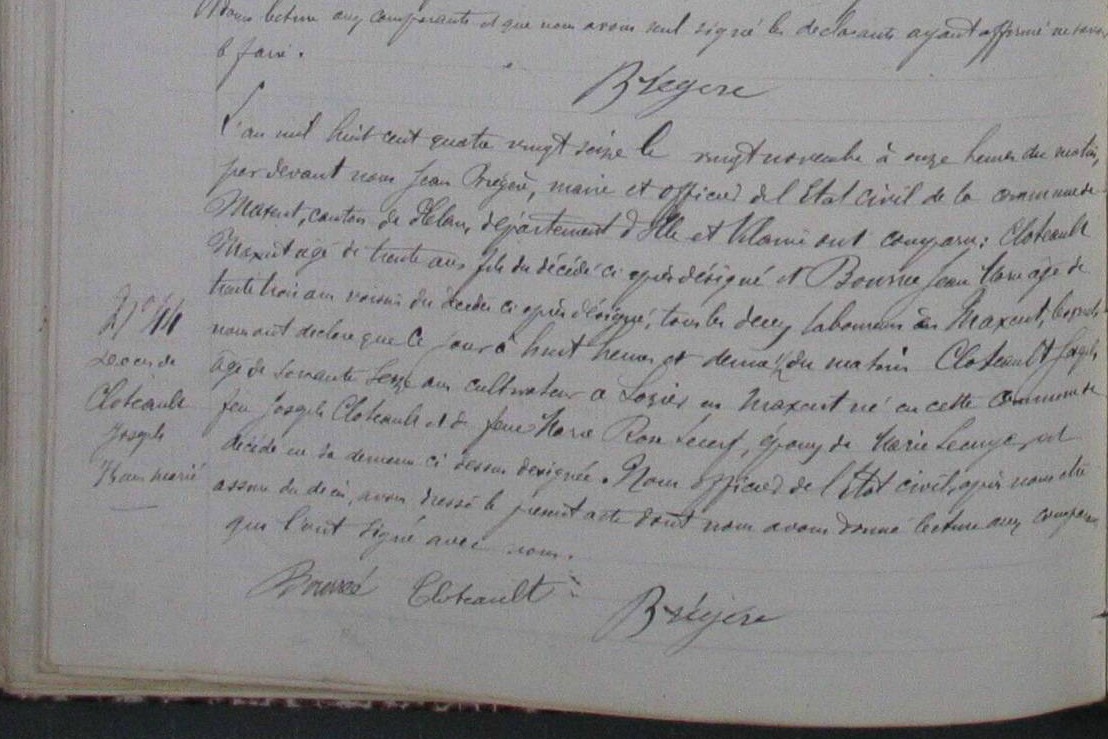 Je viens de découvrir vos recherches sur la famille Clotault, et j'ai retrouvé des ancêtres de mon mari , notamment ses grands-parents: Clotault jean Louis et Texier Rosalie ,ainsi que ses arrières grands parents: Clotault et Corvaisier. On pourra vous en dire plus sur cette branche.