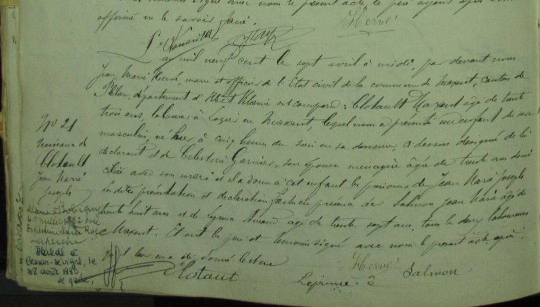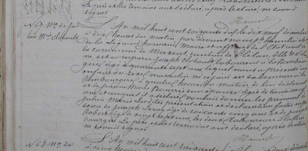 Naissance : 21 février 1821 à Maxent 35380 Décès : 20 novembre 1896 à Maxent 35380