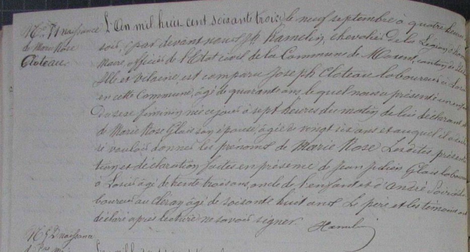 Mère : GLAIS Marie Rose ( 1837 - 1874 )