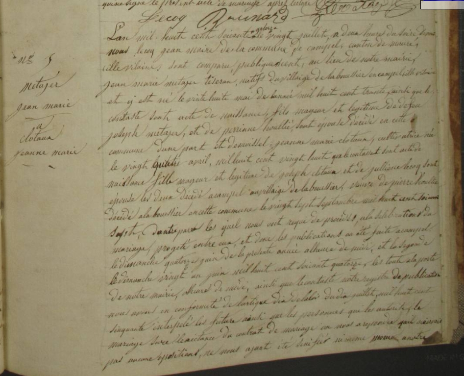 CLOTAUX AnnePhoto : 35127_AC_NMD_An1-An8_0199Date de l'acte : 10/prai/06Prénom du père : Jan, ans Nom et prénom de la mère Bertin Anne, ans Domicile des parents : GoulochèreOfficiant : Lucas Louis - Ensemble des informations surCLOTAUX AnnePhoto : 35127_AC_NMD_An1-An8_199Date de l'acte : 10 prairial an 6Prénom du père : Jan, ans Nom et prénom de la mère BERTIN Anne, ans Domicile des parents : GoulochèreOfficiant : LUCAS LouisDécès : 12 septembre 1812 à Guignen 35580 Brulonière