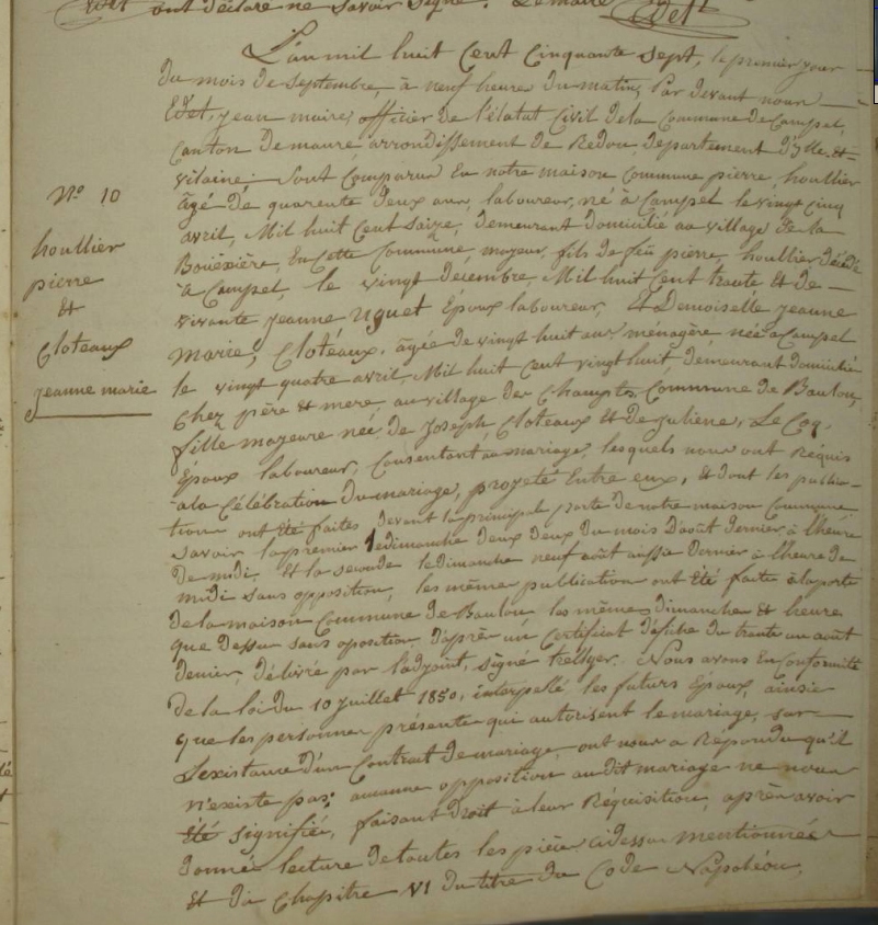 Mariage : 3 janvier 1854 à Maure-De-Bretagne 35330