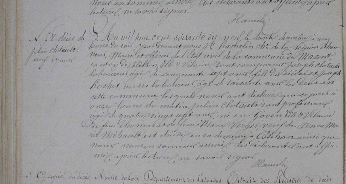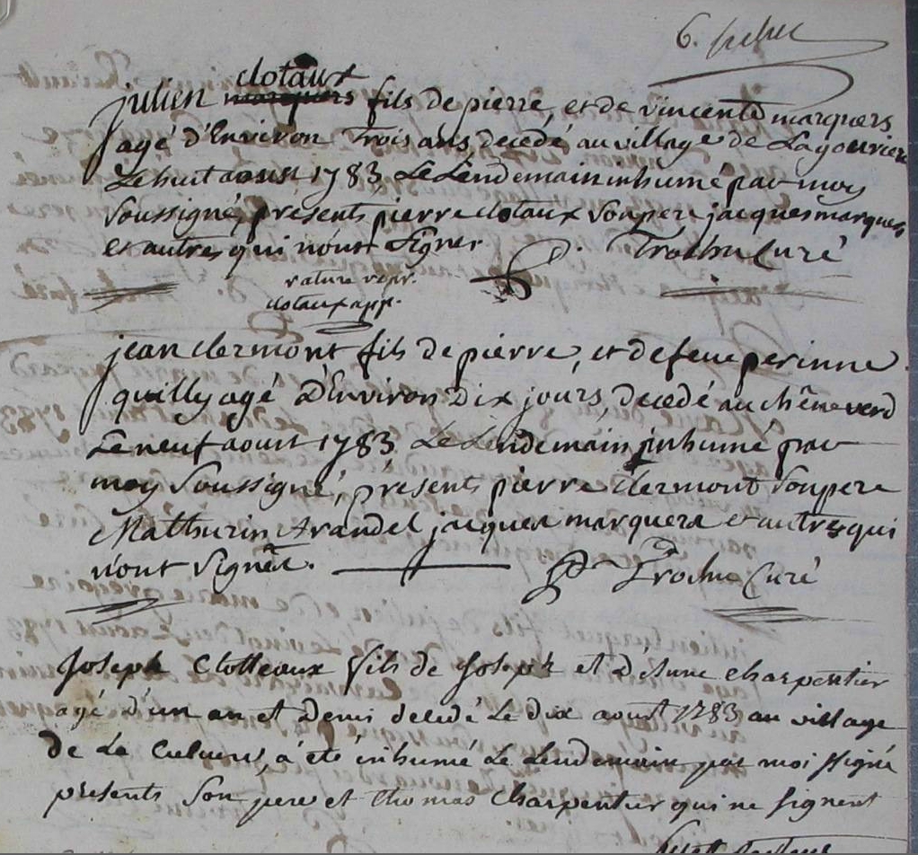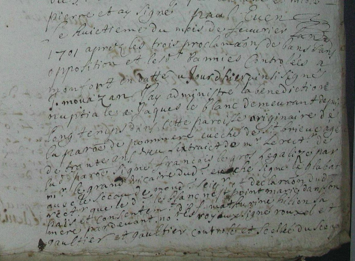 en 1701 il signe Louis ClotauxÉvénement : 8 février 1701 à Montfort-Sur-Meu 35160 paroisse Saint Jean