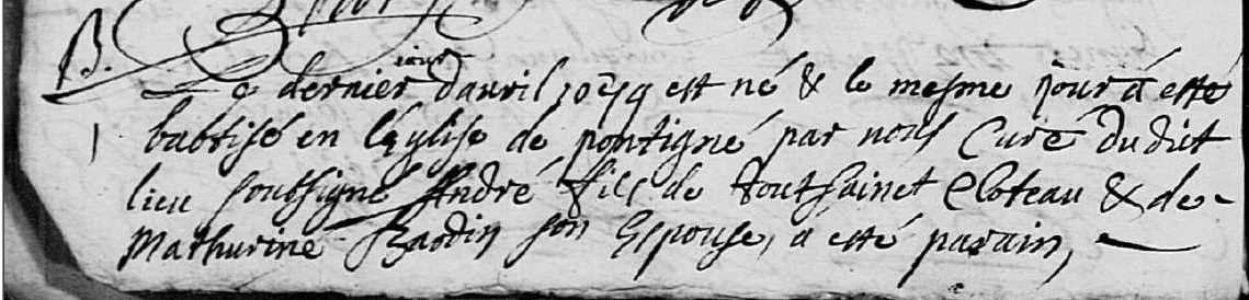 Naissance : 30 avril 1679 à Pontigné 49150
