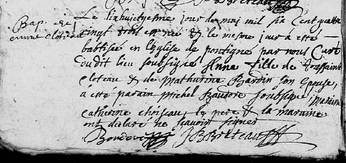 Père : CLOTEAU Toussaint ( ~ 1648 - < 1695 )