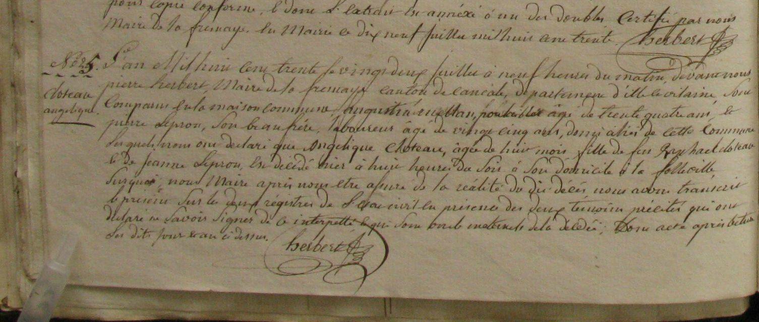 Décès : 22 juillet 1830 à La Fresnais 35111 La Folle Ville