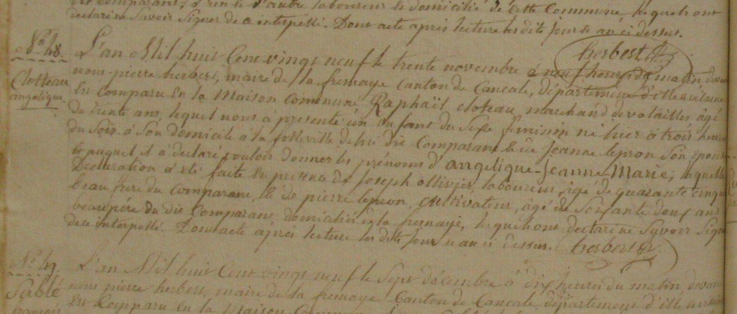 Mère : LEPRON Jeanne Marie Magdelaine ( ~ 1794 - > 1830 )