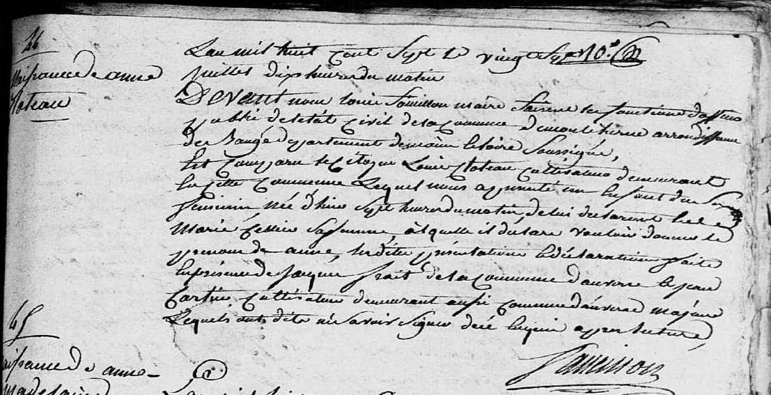 Naissance : 27 juillet 1807 à Mouliherne 49390