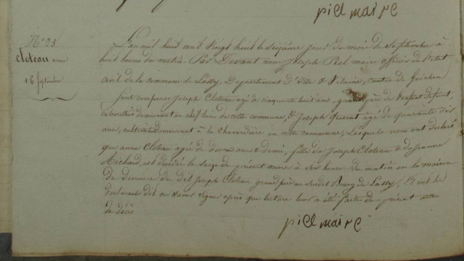 Décès : 16 septembre 1828 à Lassy 35580