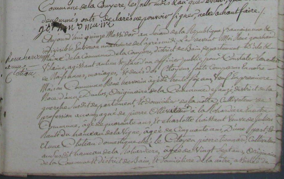 Mariage : 15 messidor an II à La Couyère 35320