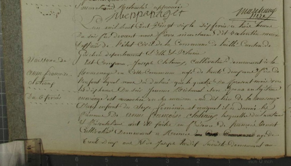 Mariage : 16 novembre 1809 à Bain-De-Bretagne 35470