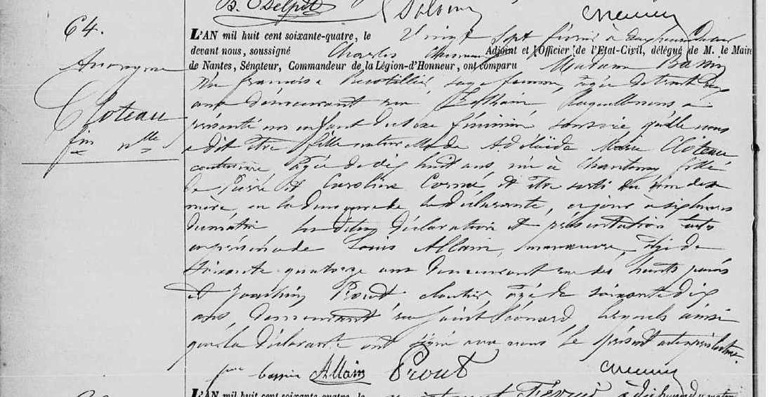 Mère : CLOTTEAU Adele Françoise Marie Adelaïde ( 1845 - > 1864 )