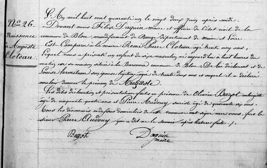 Père : CLOTEAU Rémy Pierre ( 1805 - > 1872 )
