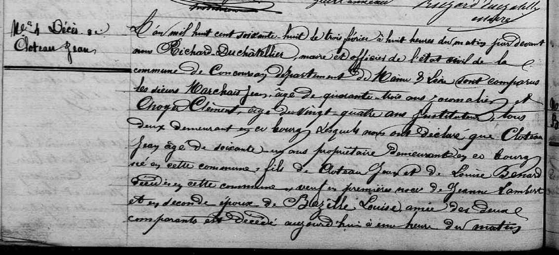 Décès : 3 février 1868 à Concourson-Sur-Layon 49700