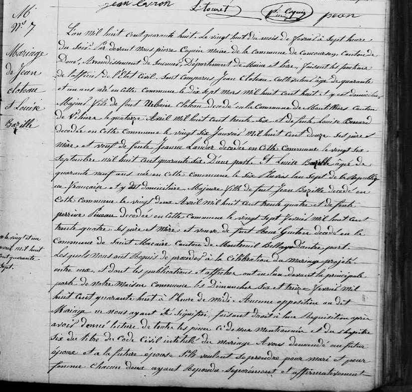 Mariage : 28 février 1848 à Concourson-Sur-Layon 49700