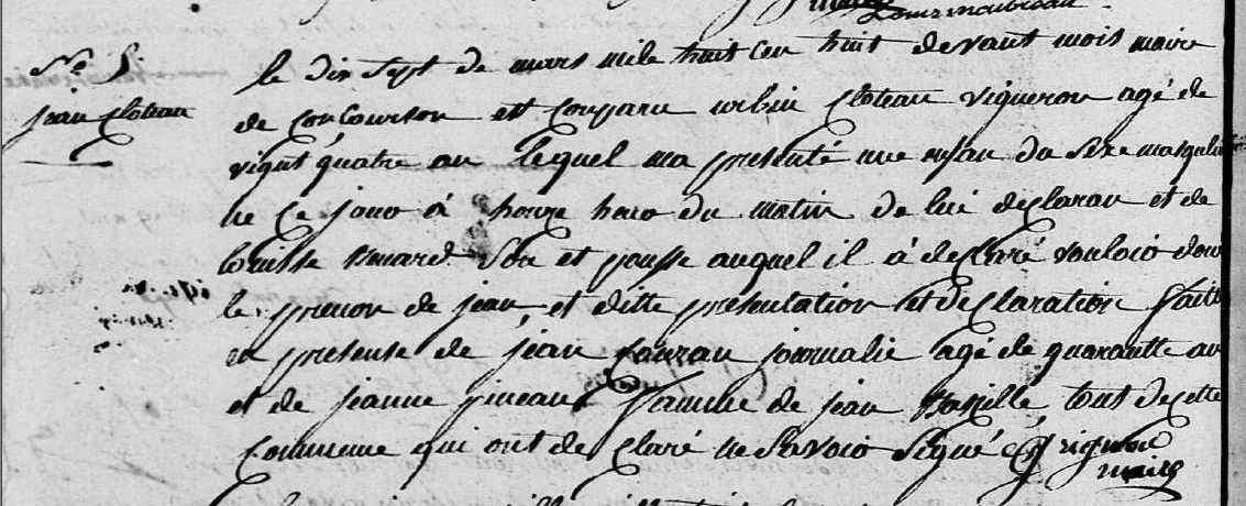 Présents : DELANOË Joseph (grand-père de l'enfant, chez qui sa fille a accouché), CLOTEAU Jean