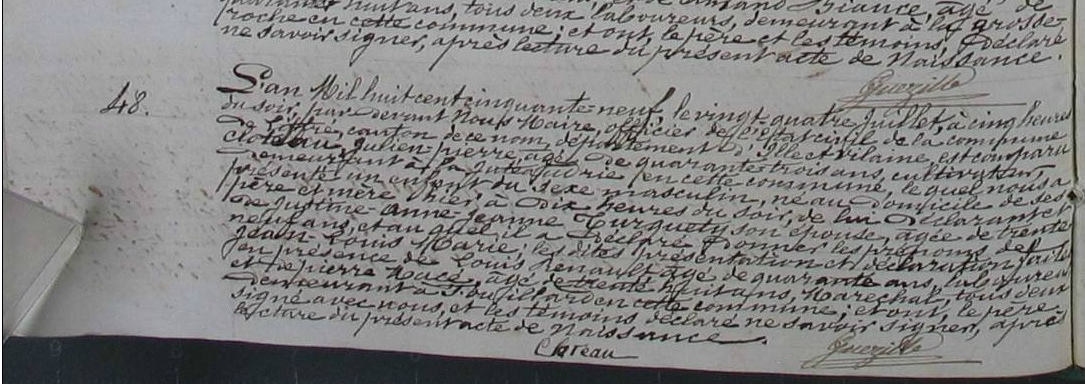 Nom et prénom du parrain Bougeard Joseph, aïeul