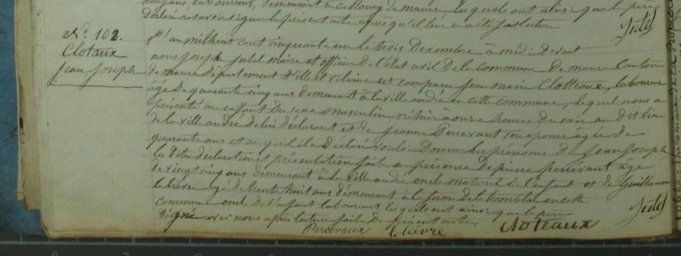 Père : CLOTTEAUX Jean-Marie ( 1807 - 1882 )
