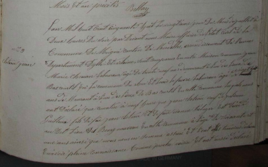 Naissance : 6 ventôse an IX à Guignen 35580 Le Bifoué - Bignon