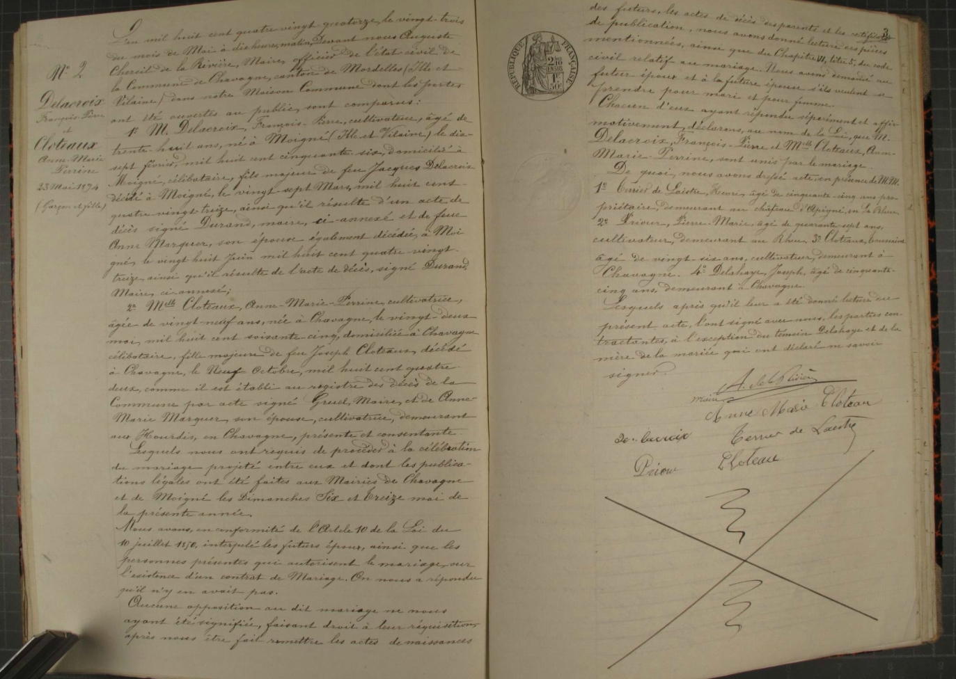 Mariage : 7 juillet 1864 à Chavagne 35310