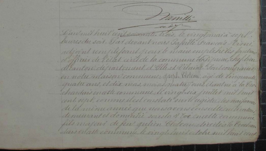 Naissance : 26 juillet 1807 à Pipriac 35550