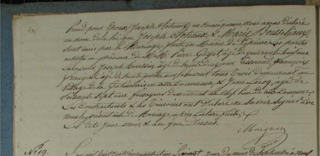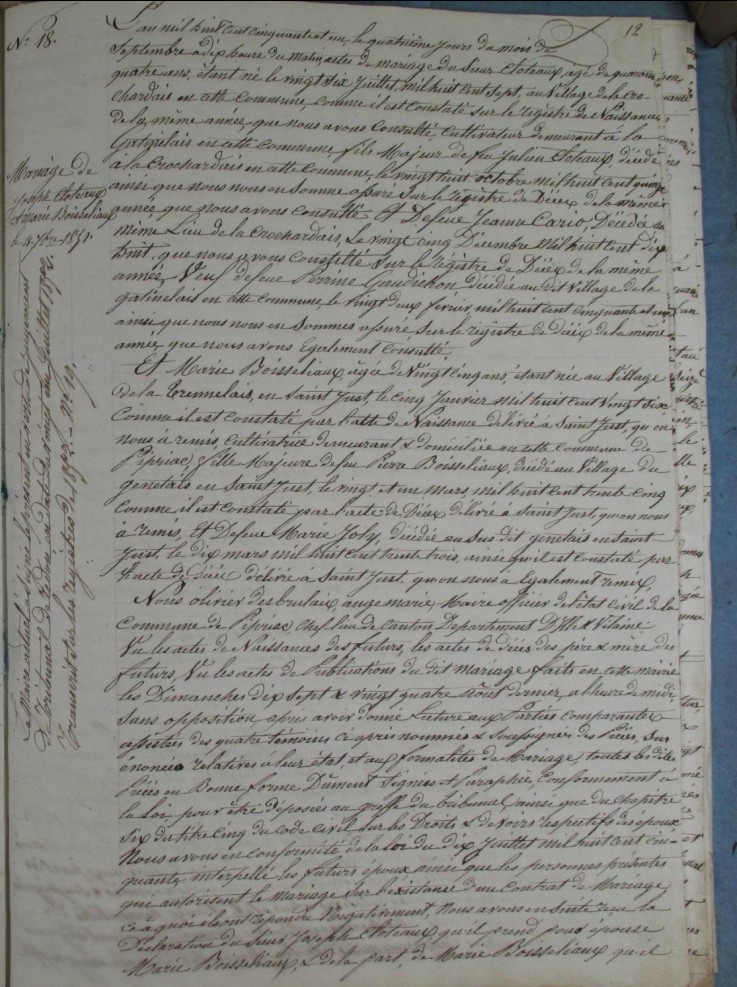 Mariage : 18 octobre 1832 à Pipriac 35550
