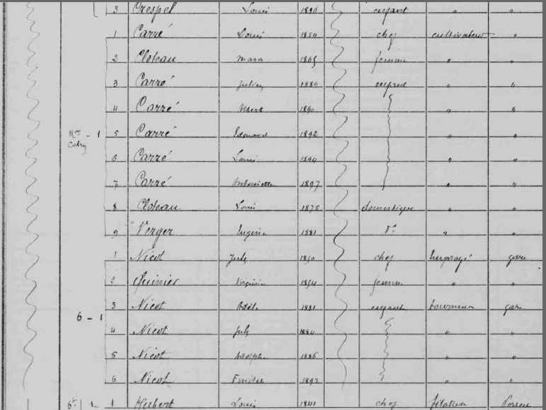 Domestique chez Carre Louis (epoux Cloteaux Marie Rose)