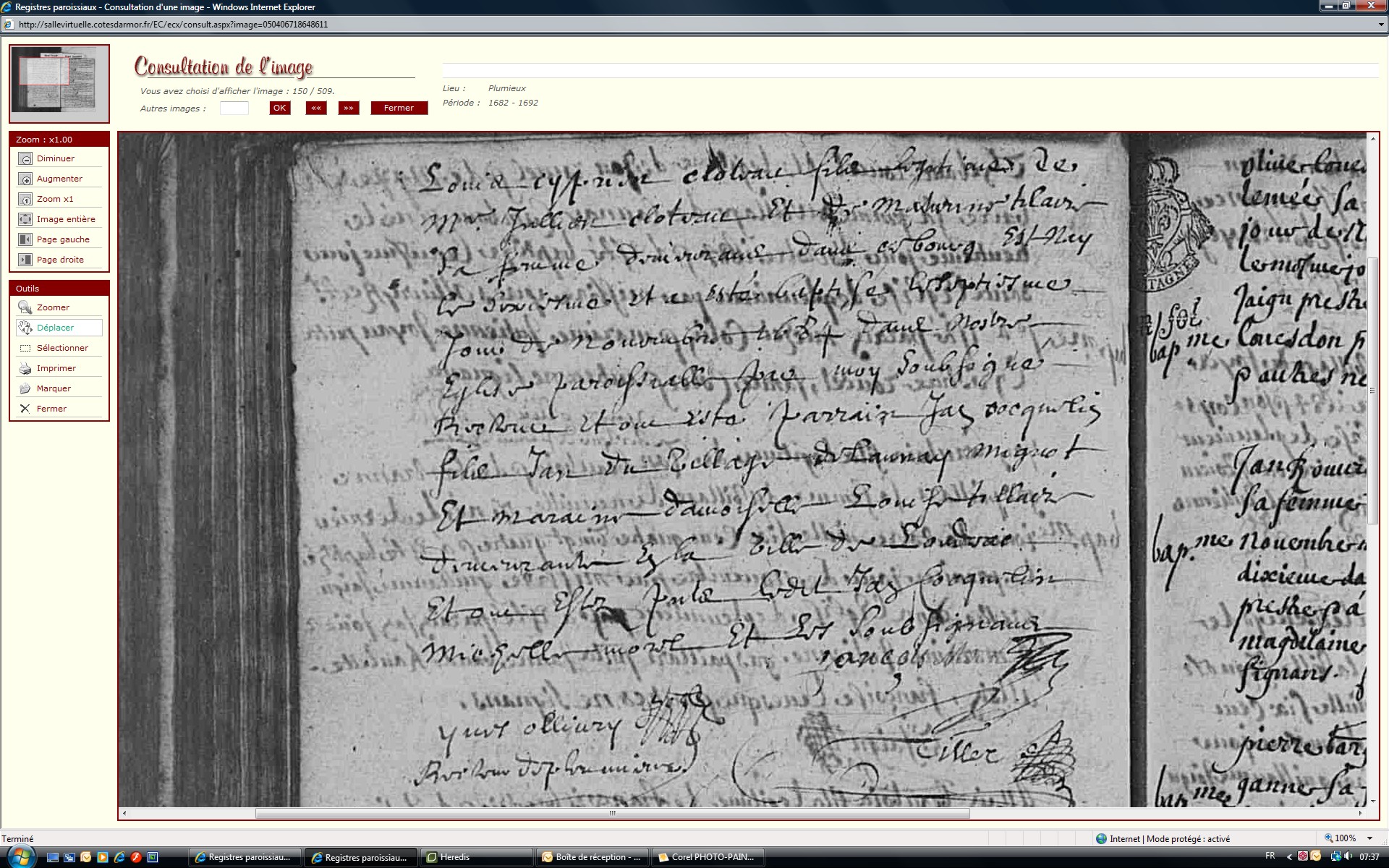 Naissance : 6 novembre 1684 à Plumieux 22210 Bourg