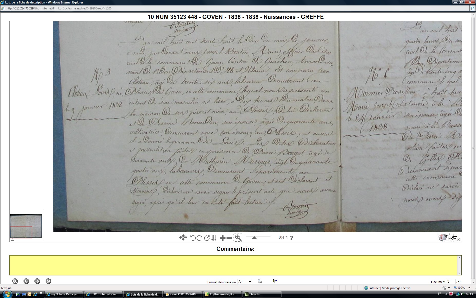 Naissance : 9 janvier 1838 à Goven 35580 Plessix