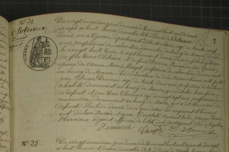 Décès : 28 juin 1877 à Maure-De-Bretagne 35330