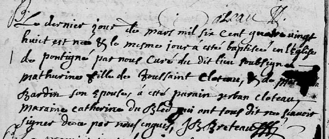 Père : CLOTEAU Toussaint ( ~ 1648 - < 1695 )