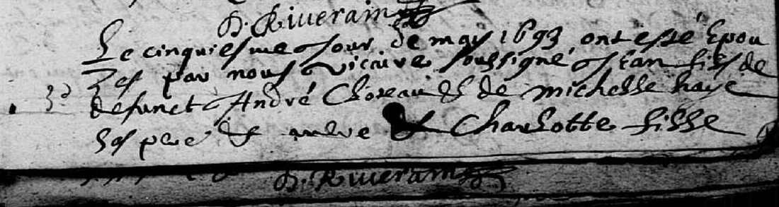 Union : CLOTEAU Jean ( 1668 - > 1696 )