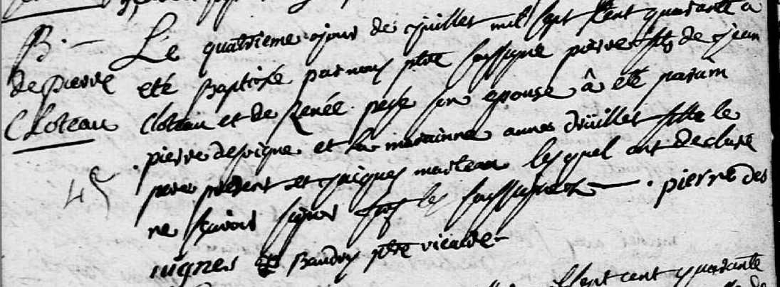 Père : CLOTEAU Jean ( ~ 1700 - 1740 )