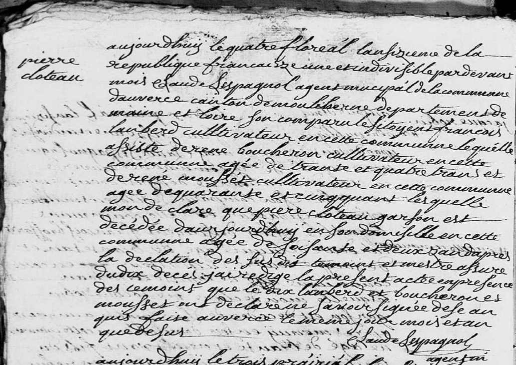 Naissance : calculée 1736 Décès : 4 floréal an VI à Auverse 49490