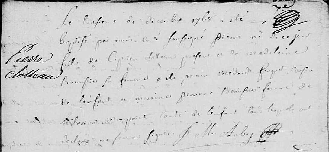Père : CLOTTEAU Cyprien ( 1718 - 1778 )