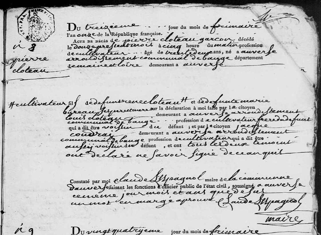 Inhumation : 2 juillet 1781 à Auverse 49490