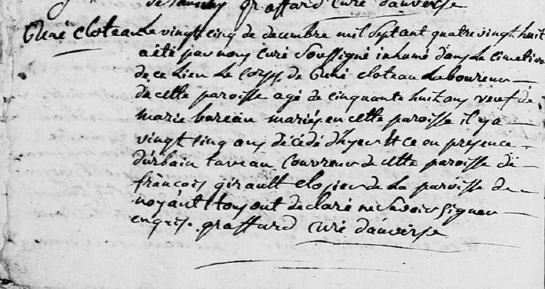 Père : CLOTEAU René ( 1695 - <> 1730 & 1764 )